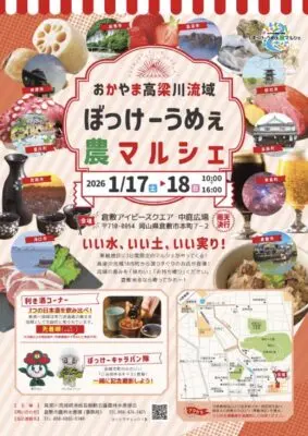 - イベント1月17日〜1月17日くらしきローカルマルシェ(毎週土曜開催)
