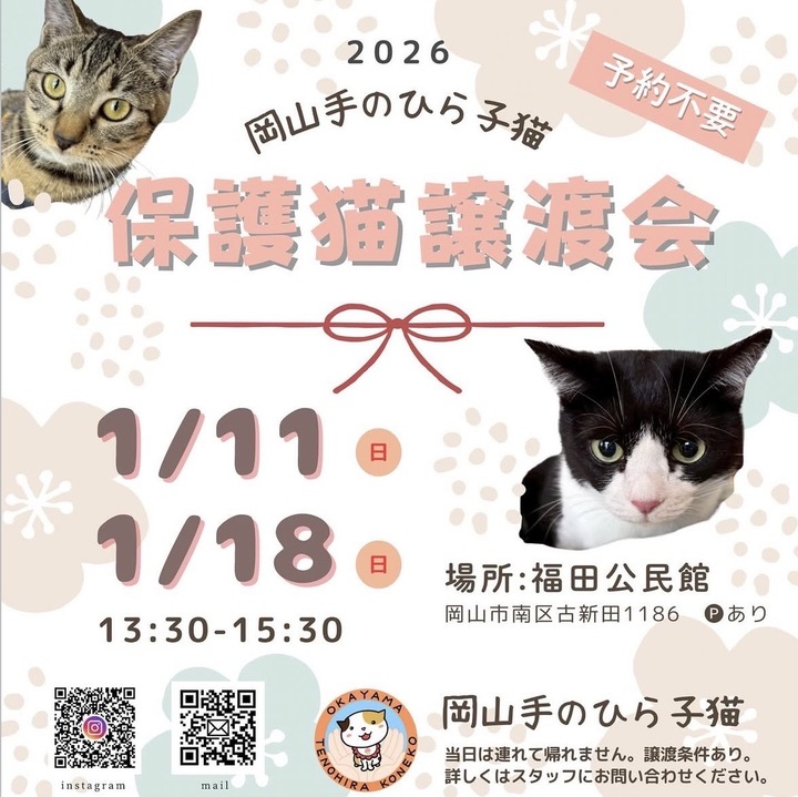 岡山手のひら子猫 1月保護猫譲渡会