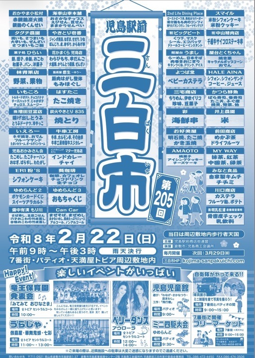 これから開催される車情報全て(リスト)2月のカレンダー今日開催明日開催今週末タグ:車で絞りこみをしています絞りこみを解除絞りこみを解除アートアンティークいぬヴィンテージステージスポーツねこバザーハンドメイドひなまつりフリーマーケットペットマルシェライトアップワークショップ体験保護猫写真撮影動物古物子供向け展示展覧会服桜植物着物祭り花花見蚤の市講習会譲渡会車音楽飲食日付選択※日付の絞り込みをすると、他の絞り込みは解除されます全て本日木19 金20 土21 日22 月23天皇誕生日 火24 水25 木26 金27エリアで絞り込みができます※エリアの絞り込みをすると、他の絞り込みは解除されます岡山市倉敷市津山市玉野市笠岡市総社市新見市備前市赤磐市真庭市早島町矢掛町奈義町イベントの並び順を変更できます日付順新規登録順人気順※地図・ジオコードの出典 第205回 児島駅前 三白市 開催迄3日 開催期間 2026/02/22~2026/02/22 参加予定 0 興味あり 0 考え中 0 倉敷市 ステージ フリーマーケット マルシェ 展示 車 飲食 あかいわ桃磐祭 モモロックフェス 開催迄10日 開催期間 2026/03/01~2026/03/01 参加予定 0 興味あり 1 考え中 0 赤磐市 ステージ 体験 車 音楽 飲食